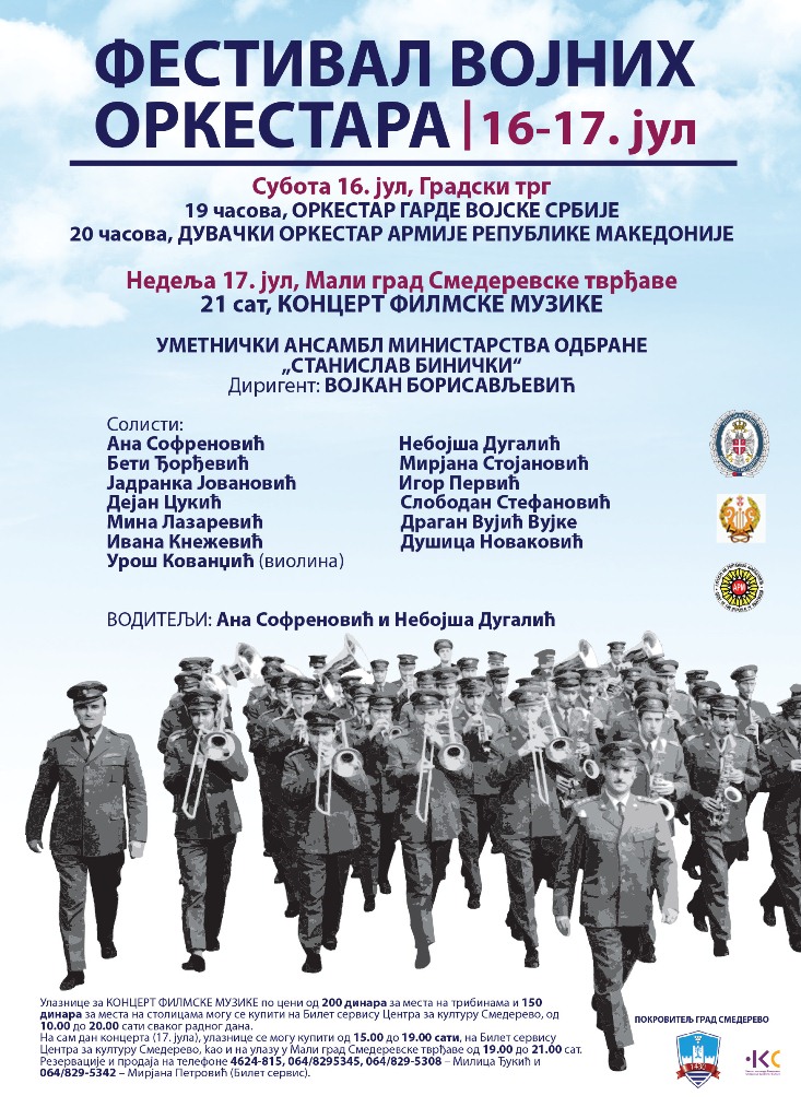 ФЕСТИВАЛ ВОЈНИХ ОРКЕСТАРА У СМЕДЕРЕВУ 16. и 17. јула | Центар за културу Смедерево
