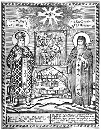 Светогорске бакрорезе израђивали су мајстори у Бечу, Москви, Кијеву, Сремским Карловцима, Венецији, Константинопољу, Атини, као и монаси Свете Горе. Важно место у историји светогорске графике припада Хиландару који је у 19. веку био једини атоски манастир са штампаријом за бакрорез.